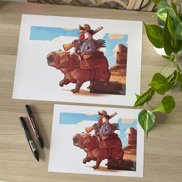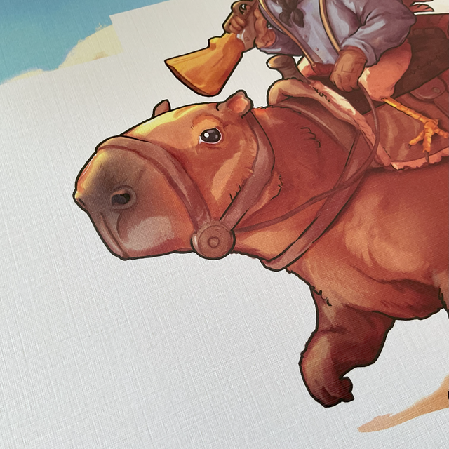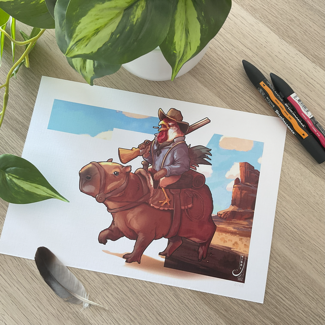 📖Mini Lore: Siempre montando en su fiel capibara, el gallo más duro del corral, con muy malas plumas y poca paciencia. Mejor no le toques los huevos...